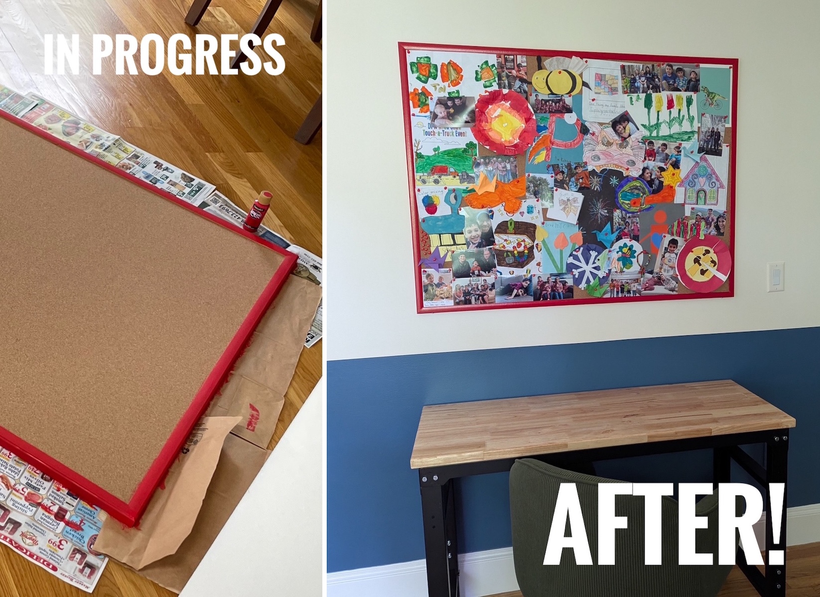 Bulletin Board. And where can he hang those art creations when he’s done? A bulletin board, of course!! The basic wood frame